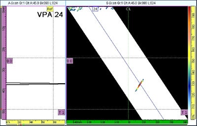 È possibile programmare la scansione lineare ad un singolo angolo fisso, in modo simile al fascio da una sonda a fascio angolare a singolo elemento a ultrasuoni convenzionali. Questo fascio ad angolo singolo scansiona lungo la sonda permettendo all'utente d'ispezionare una parte più ampia del pezzo senza dover spostare la sonda. È possibile ridurre i tempi d'ispezione, soprattutto nel caso delle applicazioni d'ispezione delle saldature.