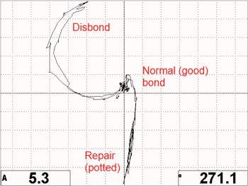 Capacità di rilevamento: Rilevamento di difetti in rivestimento di materiale composito-grafite aderente a struttura a nido d'ape di Nomex;spessore del rivestimento da 2 strati a 7 strati. Dimensione dei difetti da 25,5 mm a 50,8 mm da 2 strati a 18 strati. Dimensione dei difetti di 12,7 mm o maggiore.