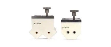 Gli zoccoli angolari ad immersione per sonde curve sono disponibili con differenti raggi e angoli, con un raggio regolabile in grado di adattarsi a diverse componenti da ispezionare. Questi zoccoli permettono di eseguire analisi manuali e l'installazione dell'encoder Mini-Wheel.