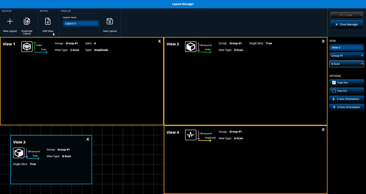 The OmniScan X4 device runs as a black box (using the OmniScan Black Box app), and the inspection is performed on the AeroView Inspection computer. You can create your setup using ScanPlan software, adapting your layouts and palettes. Calibrate your system on a test block, and you’re ready to start. All your data is stored on your PC.