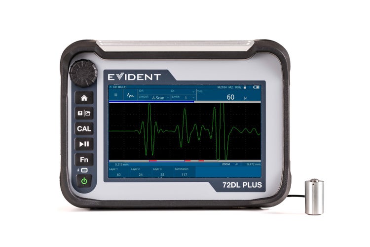 Il misuratore di spessori a ultrasuoni Evident 72DL PLUS™ assicura una precisa misura di spessori ad ultrasuoni a alta velocità attraverso uno strumento portatile e di facile uso. Attraverso una veloce scansione, degli algoritmi avanzati e la capacità di misura di spessore minore in assoluto per noi, è possibile misurare con affidabilità lo spessore di strati molto sottili nelle applicazioni più complesse.
