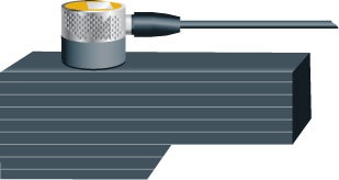 超音波パルスが積層の反対面で反射し、特定のタイミングでのエコーが発生します。機器はこのエコーを基準として使用します。