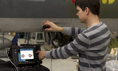 オリンパスは、航空宇宙産業における重ね継手部の表面割れ検査のソリューションとして、渦流検査の導入を推奨しています。航空機の構造には数多くのファスナーが含まれているため、ファスナーすべての保全性を確保することは困難な作業になります。従来の検査技術では通常、長い作業時間を必要とし、検出能もオペレーターの力量に大きく依存していました。しかし、この10年間、こうした検査技術について比較的大きな改善は見られませんでした。