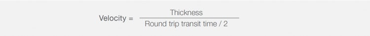 高精度の音速測定には、72DL PLUS超音波厚さ計(+または–10ピコ秒)をお勧めします。必要に応じて、音速を求めるために単位をcm/秒またはインチ/秒に変換します(時間は通常μ秒で測定し、cm/μ秒またはインチ/μ秒に106を掛けてcm/秒またはインチ/秒を出します)。求めた音速を次の式に当てはめることができます。