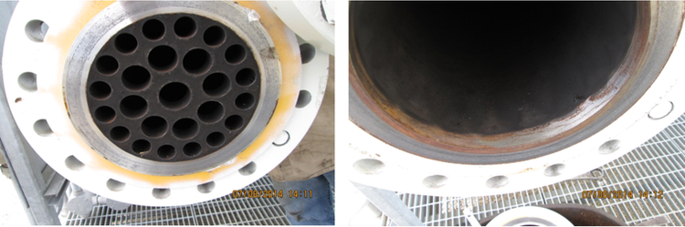メーターチューブの直線部 – 研磨したメーターチューブの直線部に腐食や堆積物を認める