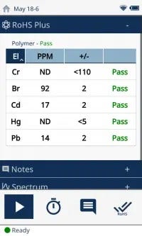 ハンドヘルド蛍光X線分析計Vantaは、RoHS規制有害物質やその他の国・地域の法的規制へ対応するための有効なツールです。 Vanta分析計は鉛(Pb)、カドミウム(Cd)、水銀(Hg)、クロム(Cr)、臭素(Br)の含有量を高速でスキャンし、消費材の化学分析結果をその場で取得することができます。
