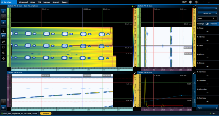 AeroView Analysis ソフトウェアは、.ndeデータフォーマットとの互換性があるため、以下の機器を使用して 0°(オーバーラップあり)で取得した PAUT データの解析が可能です。