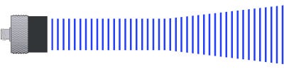 大まかにはいうと、典型的なフラット・タイプの探触子のビームは、有効振動子径を源として発生したエネルギーが柱状に広がったものとして考えられています。その形状は徐々に径を増し、最終的には消散します。