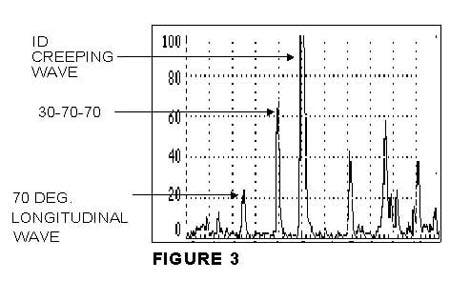 図1のAスキャンは、内径クリーピング波信号のみを示しています。これは、浅い欠陥があることを示します。