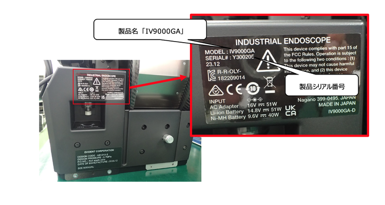 工業用内視鏡 「IV9000GA」 の無償修理について