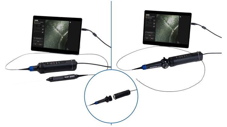 フレキシブルスコープ(軟性鏡)は柔軟性があり狭く入り組んだ箇所の観察に、リジットスコープ(硬性鏡)は曲がらない性質を持ち細くて長い空間の観察に適していますが、本製品は、これらを一つのプラットフォームで対応可能にしました。従来2台のシステムを使用して行っていた観察を1台で完遂できることで、より幅広い検査シーンに対応し、検査の効率化に貢献します。
