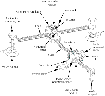 プローブ位置を測定するための2個のエンコーダーモジュール(各軸に1個ずつ)があります。これらのモジュールの動きは、3.27mmの増分、フリーランまたはロックすることができます。
