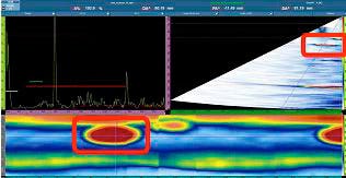 그림 8: 상단 표면에서 140mm 떨어진 결함에 대한 신호는 구성 요소를 두 개 사용해서는 거의 감지가 불가능했습니다.