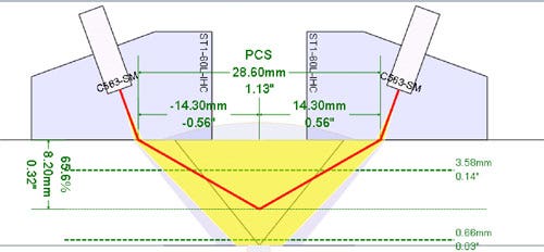 Proper positioning of the TOFD and Pulse Echo transducers is established from software (see included Beam Tool report), table of positions, or written procedure. Because code requirements vary from industry to industry the required equipment and setups may vary. Currently customers are utilizing the PV100 most commonly under AWS (Part G 6.36) and ASME (CC 2235-9, see included PDF) requirements. Depending on code requirements, performance demonstration and calibration blocks may also have to be acquired. The equipment is sold as a package to include all the necessary equipment to cover the range of thicknesses, weld designs, etc. Once setups/calibrations are created and stored they can be recalled from the Omniscan platform.