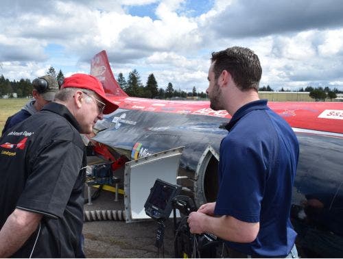 그것은 한 통의 전화로 시작되었습니다. 저는 North American Eagle 팀의 세계 지상 속도 기록 프로젝트를 우연히 발견했고, 즉시 전화기를 들고 팀 소유주인 Ed Shadle에게 전화를 걸었습니다. 그들은 터빈으로 구동되는 초음속 자동차를 가지고 있었고, 저는 우리의 IFLEX® NX 비디오스코프가 그들이 목표를 안전하게 달성하는 데 도움이 될 수 있다는 것을 알고 있었습니다.
