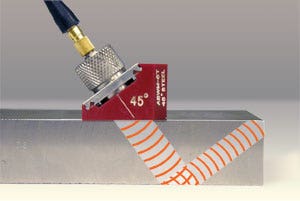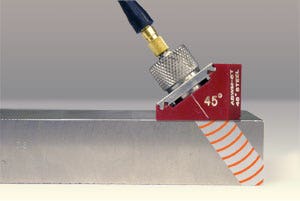 First, it is important to remember that the beam index point (the point at which the center of the sound beam exists the wedge) is a fixed location for a conventional wedge, and a moving point for phased array wedges. In the case of linear scans, the beam index point will move along the length of the probe as the scan sequences. In the case of angular sector scans, different angular components will exit the wedge at different points.