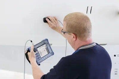 The ergonomic design of the BondMaster 600 is convenient for difficult-to-access inspection locations. For inspection in tight spaces, the factory-installed hand strap provides maximum comfort while maintaining access to the most critical functions.