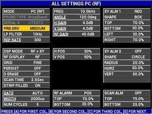 | Available Alarm Types* | 3 simultaneous alarms. Choices include BOX (rectangle), POLAR (circle), SECTOR (pie), SCAN (time-based), and SPECTRUM (frequency response). | |