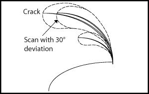 - Cracks are considered detectable up to +/- 30 degrees, but it also depends on depth and crack length. Longer cracks are more likely to be detected off angle.