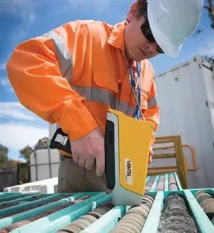 Vanta手持式X射线荧光(XRF)分析仪可以在现场对钻探 岩屑和岩芯进行方便的分析,以为用户瞬时提供野外地球 化学结果。