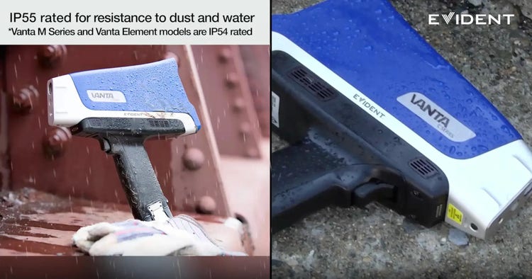 用于回收和废料分拣的Vanta手持式XRF分析仪根据不同的型号符合IP64或IP65评级标准,可以抵御雨水、尘土和灰尘的侵袭,并通过了美国国防部标准(MIL-STD-810G)中的坠落测试,从而有助于防止分析仪在条件恶劣的废料场中受到损坏,并可在很大程度上延长工作时间。