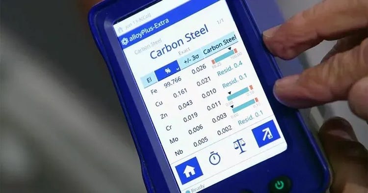 在短短的几秒钟之后,Vanta分析仪就证实了头盔由碳钢制成。