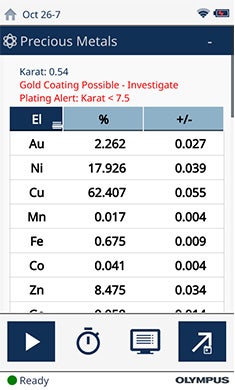 - 探测到任何潜在的污染物或非贵金属。