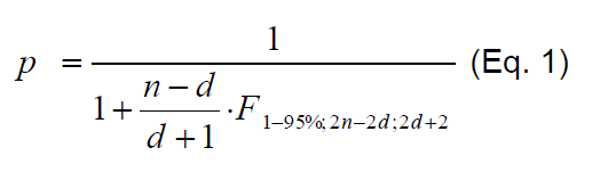 漏查缺陷的概率(下面等式中的p)使用所用标准中提到的公式计算,例如这个ISO方程式: