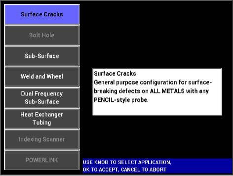 为了满足物理要求,还可提供多种类型的表面探头,包括平直型和角度型。这些探头还配有可调整为不同形状的柔性轴。表面探头经过设计,可提供探测小裂纹尖端所需的灵敏度。可以选择线圈的尺寸,以更好地探测到目标裂纹的长度、深度和宽度。