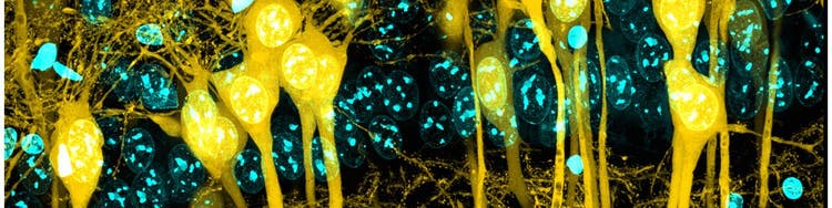 Image Citation: Fixed brain coronal slice (thickness 1mm) of Thy1-YFP-H mouse. Staining: DAPI by ChemScale. Mounting solution: SCALEVIEW-SMt (ND=1.49). MIP image acquired by FLUOVIEW™ FV3000 using UPLXAPO60XO(NA1.42). Cyan: DAPI(405nm), Yellow: YFP(488nm). Image courtesy of Laboratory for Cell Function Dynamics RIKEN Center for Brain Science: Tetsushi Hoshida, Hiroshi Hama, Atsushi Miyawaki.