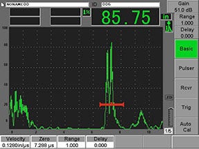 正如垂直声束检测,在角度声束检测中,操作人员要寻找对应于不连续性缺陷的反射信号。在进行初始设置时,操作人员必须记下来自焊道或其他几何结构的任何回波。在代表焊缝的区域中出现的其他回波可能来自于未融合、裂纹、多孔性或其他不连续性缺陷,通过进一步分析,可以确定这些缺陷的类型、深度和大小。