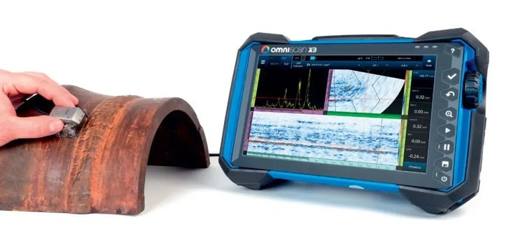 A28 angle-beam T/R probe for weld inspection and the OmniScan X3 flaw detector