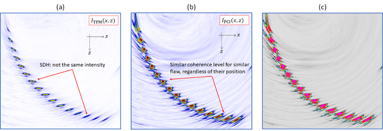 - PCI的信噪比(SNR)低于基于波幅的方法。但是,如前所述,这不是一个主要缺点,因为PCI可以很容易地将存在缺陷的相干区域与对应于图像噪声区域的非相干区域区分开来。