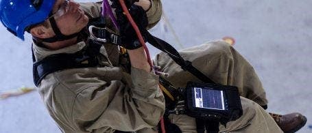 在具有挑战性的检测应用中,EPOCH 6LT探伤仪为借助绳索攀爬进行检测的技术人员,提供了可确保人身安全的功能。