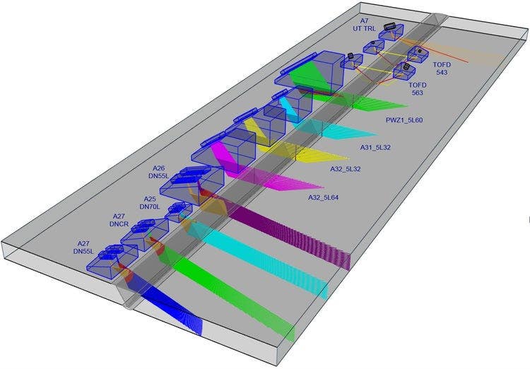 WeldSight软件齐全的采集和分析工具有助于完成符合工程要求且具有可重复性的高级相控阵(PA)、超声(UT)和衍射时差(TOFD)焊缝检测。