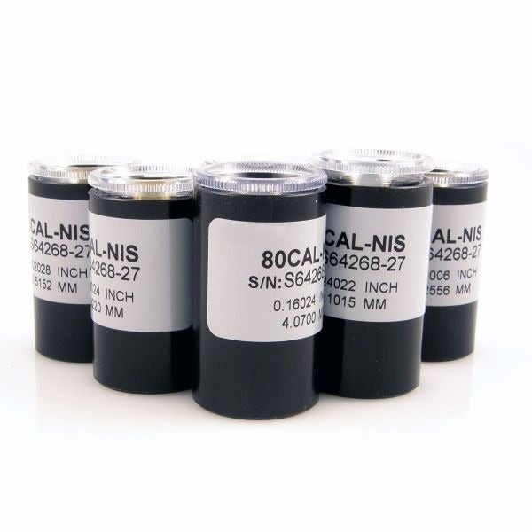A complete set of six Magna Mike calibration standards (0.010”, 0.020”, 0.040”, 0.080”, 0.160”, 0.240”) traceable to NIST. Also includes the certificate of calibration.