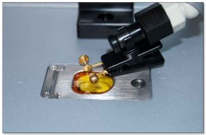 GoldXpert分析仪配有一个铰接式样件固定夹,用于在适当的方向上固定被分析的样件。在检测较小部件或混合金属制珠宝时,样件固定夹是一个理想实用的配件。
