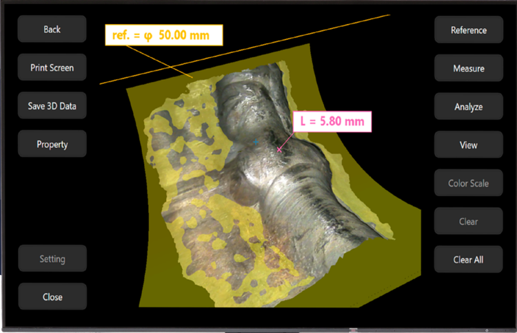 在管道检测中,准确评估隆起和壁厚变薄至关重要。点到曲面测量模式可以将管道的表面轮廓作为参考面,精准测量深度和高度。与传统方法相比,使用这种创新方法可以更精准地评估缺陷。