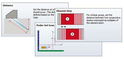 一次单组 复合式扫查 的覆盖面积与两次扇形扫查面积相似。NDT SetupBuilder软件支持复合式扫查声束,这是一种结合扇形束(扫查)和线性束(扫查)的混合策略(扫查模式)。