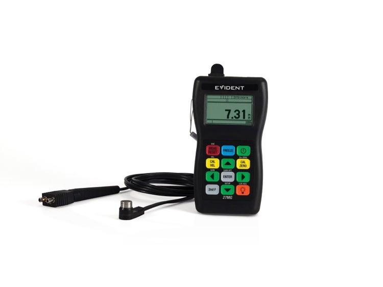 27MG的标准配置带有经济实用的D7910双晶探头,用户使用这款探头可以完成许多基本腐蚀应用的测厚操作。Evident还备有种类齐全的双晶探头系列产品,可以对很薄、很厚的材料,或小直径管进行测量。与27MG兼容的Evident探头带有自动探头识别功能,可通过自动调用默认V声程校正的方式,优化探头的性能。